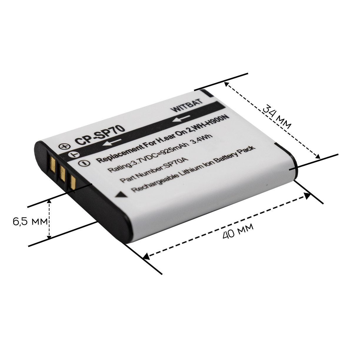 Батарея Li-Ion, Напряжение: 3.7V Емкость: 925 mAh.