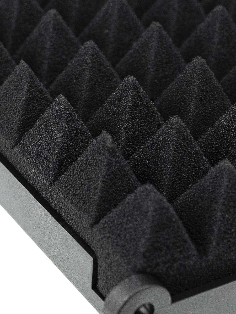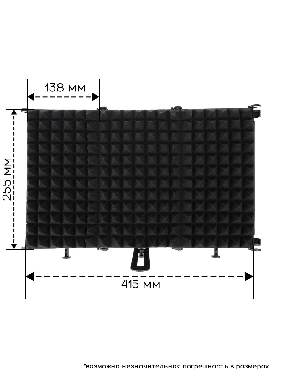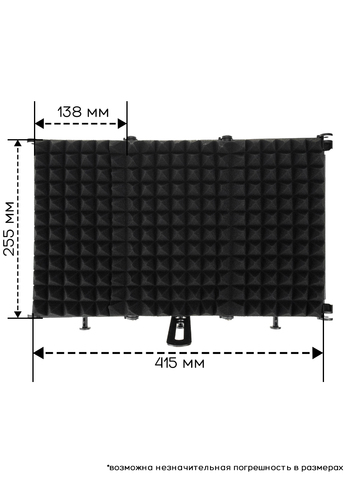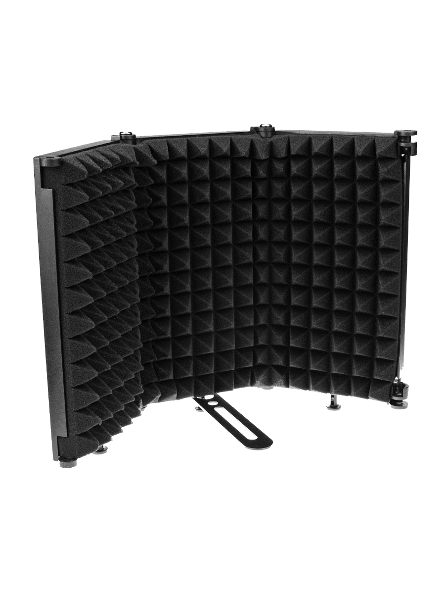 • Портативность и простота использования: В отличие от полноценной акустической кабины, экран является портативным решением. Его можно легко установить на стандартную микрофонную стойку, на пол или на стол.