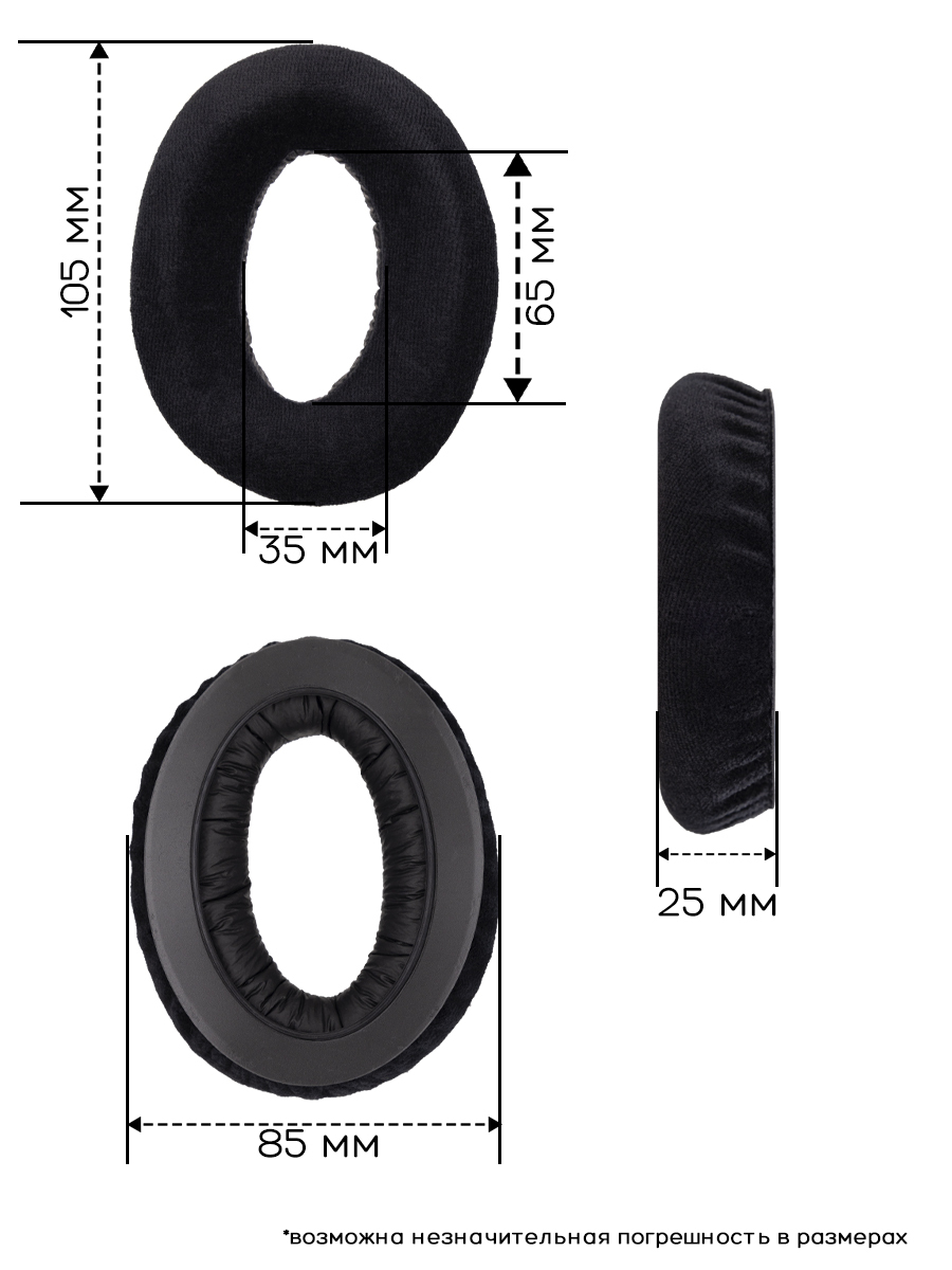 Амбушюры для наушников Sennheiser: HD265. Они сделаны из качественных материалов, прослужат долгое время. Амбушюры сделаны из велюровой ткани высокого качества, внутри находится мягкий поролон, который не давит на уши при длительном использовании наушников.