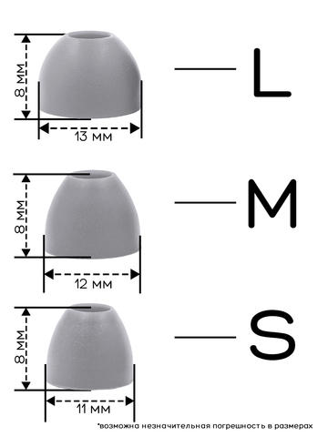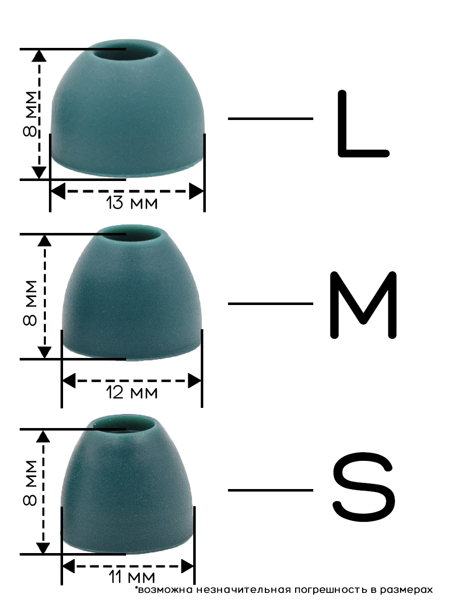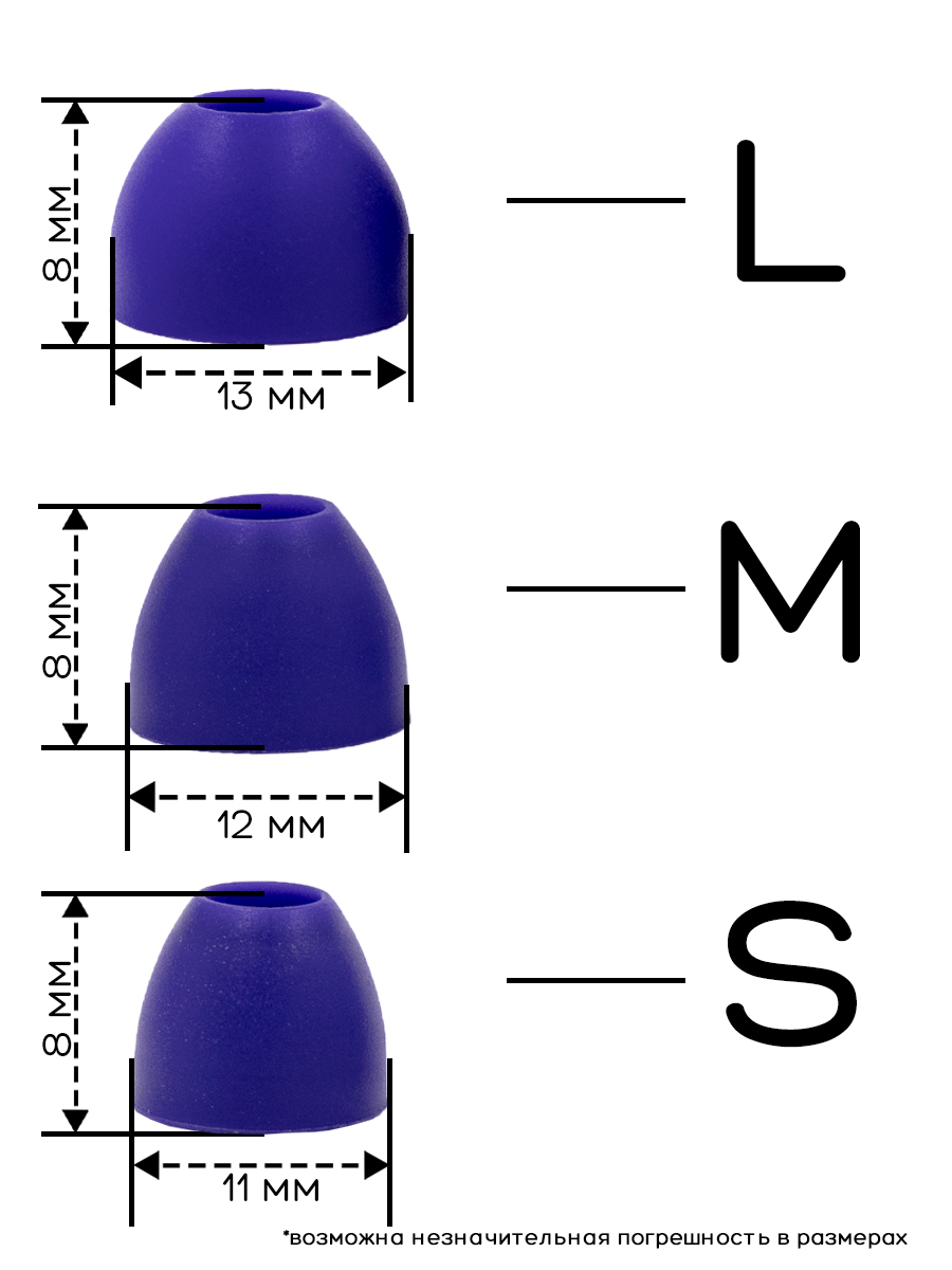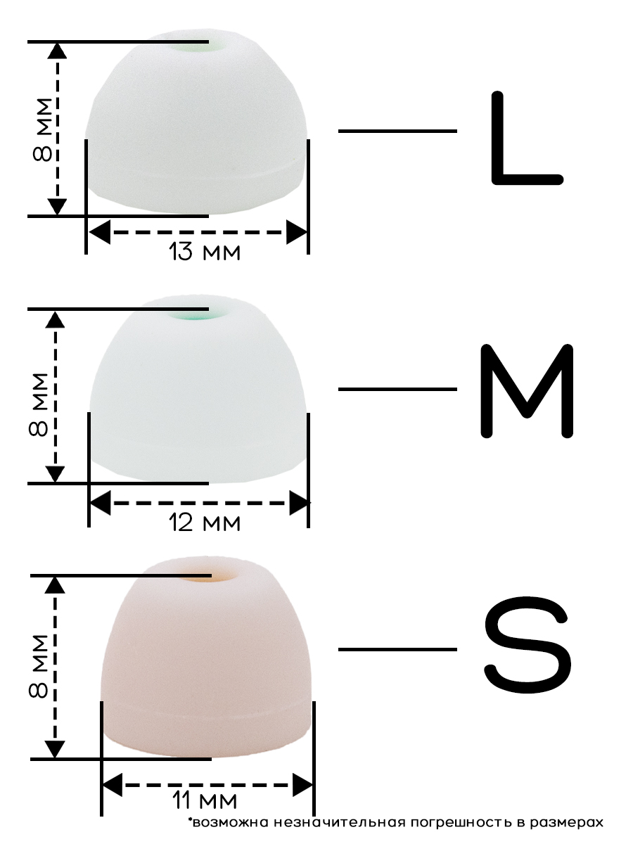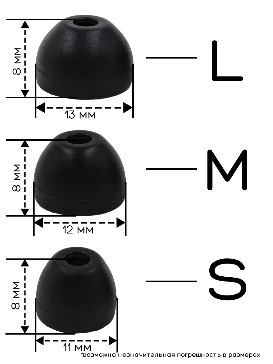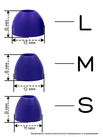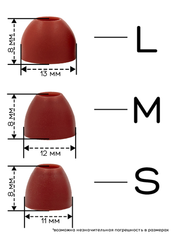Универсальные амбушюры с несколькими размерами. Амбушюры сделаны из качественного силикона. Размер: L-13mm, M-12mm, S -11mm.В ассортименте несколько цветов: черный, белый. красный, зеленый, синий.