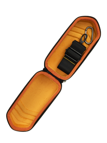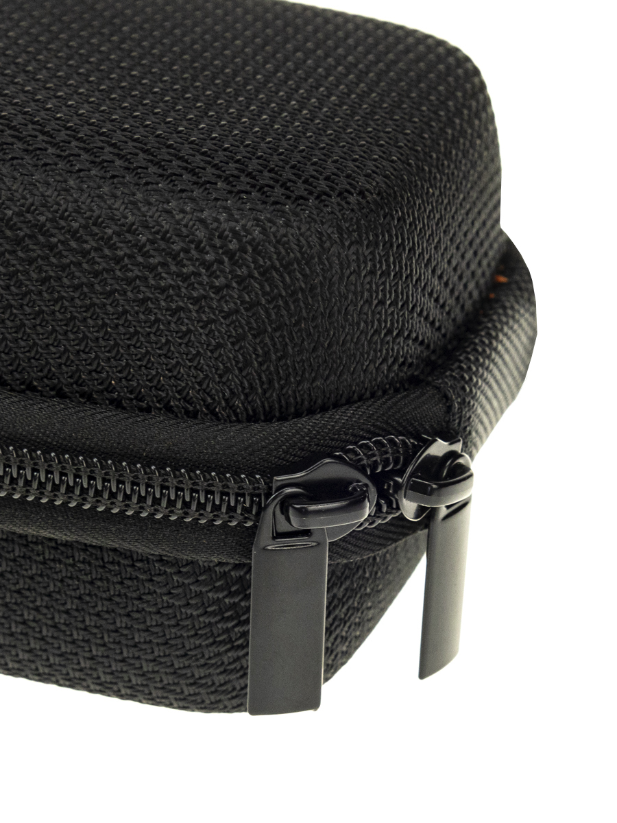 Внутри чехла расположен мягкий велюровый слой, который защищает колонку от повреждений и царапин. Дополнительно предусмотрен регулируемый ремень на карабине и маленькая сумочка для хранения аксессуаров.
