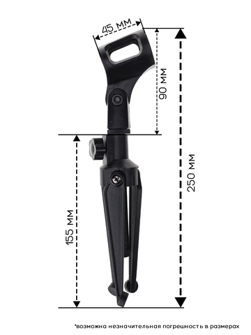 Микрофонная стойка настольная, тренога (версия 2), телескопическая высота от 220мм - 285мм.