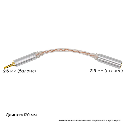 Аудио кабель-переходник для наушников, усилителей и аудиотехники 2.5мм (Папа-баланс) на 3.5 (Мама-стерео).